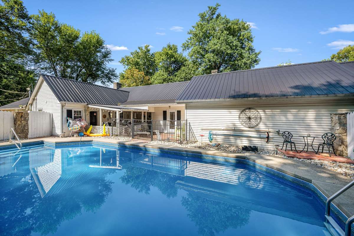 Charm & Nearly 15 ACRES to play! This is the dream you' ve been looking for! Beautiful historic farmhouse with an original fireplace, beautiful green pasture, in- ground pool, rolling hill and a front porch meant for rocking on a swing or a chair with sweet tea in hand. Inside, the spacious foyer flows into a large living room and primary bedroom that leads to the patio and pool. From the living room, step into a dining room perfect for hosting holidays and dinner parties. The star of the show inside? The sunroom! Views you would picture in a storybook and midmorning sunlight provide the perfect space to read a book or relax with coffee. Work from home? Choose between two perfect spots: the upstairs hobby room or the detached studio for a little extra privacy ( currently being used as a 4th bedroom) . Don' t miss another summer without a pool! Pool liner, filter, and pump have been replaced in the last 5 years. Looking for a place for horses to run, cows to graze, or simply to make memories with friends and family? This is the perfect place for you! Check out the attached list of all the updates made.