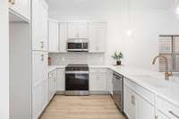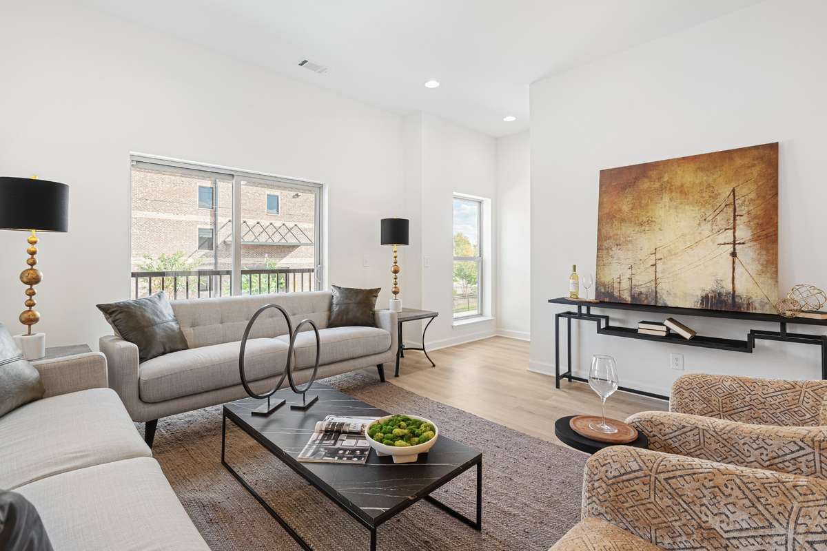 Suburban Chic Loft- Style Condo 2 Bedrooms | 2. 5 Bathrooms | 2- Car Garage | 1, 400 SF Step into this stylish 2- story condo with soaring 10- ft ceilings and an open floor plan designed for modern living. The home boasts Mohawk Revwood laminate flooring throughout ( no carpet! ) and a striking solid wood staircase. The chef’s kitchen is a true showstopper—featuring quartz countertops, a 9+ ft peninsula island, tile backsplash, custom- built soft- close cabinetry, and stainless steel appliances. Retreat to the spa- like primary suite with a large glass- enclosed shower, floor- to- ceiling designer tile, mosaic tile floors, and a double vanity with quartz counters and under- mount sinks. The spacious secondary bedroom offers its own en suite bath for ultimate privacy and comfort. Additional highlights: Loft- style design with abundant natural light 2- car garage for convenience and storage Chic finishes throughout Perfect blend of style, function, and comfort—this condo is move- in ready and waiting for you! Buyer to verify all information. Builder incentive towards closing costs and/ or rate buy down; call agent for details. Pictures may be for a different unit and for marketing purposes only.