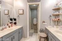 The primary suite boasts a walk- in closet and an ensuite bath with dual vanities for convenience. A two- car garage and unfinished basement provide ample storage and potential, while the basement also includes a brick wood- burning fireplace for cozy evenings. Outside, you' ll find a very large multi- purpose outbuilding and an expansive yard, offering endless opportunities for hobbies, storage, or workspace.