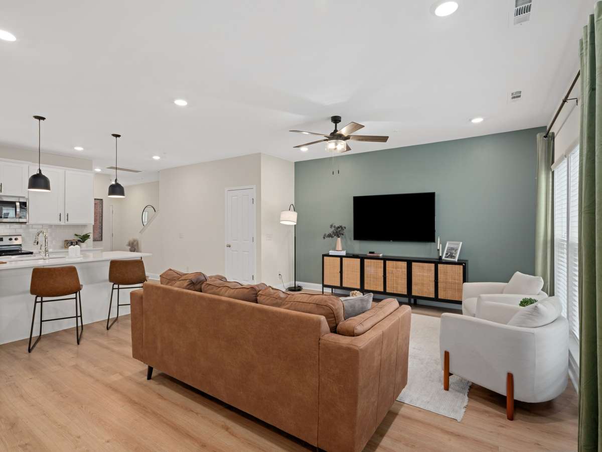 Nestled within the desirable Harvest Point community, this stunning interior designer townhome offers a perfect blend of modern luxury and effortless living. Step inside to discover a bright and inviting open- concept layout where the gorgeous kitchen, featuring a large island with elegant quartz countertops, flows seamlessly into the den and dining room, creating an ideal space for both entertaining and daily life.