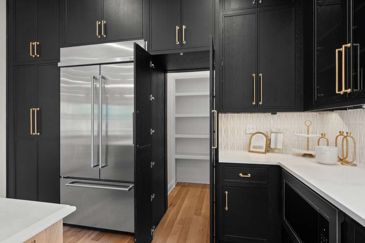 The heart of the home is the gourmet kitchen, complete with upscale finishes and an extra- large hidden walk- in pantry—a dream for any home chef. The open- concept layout flows seamlessly into the living and dining spaces, making it an entertainer’s paradise.