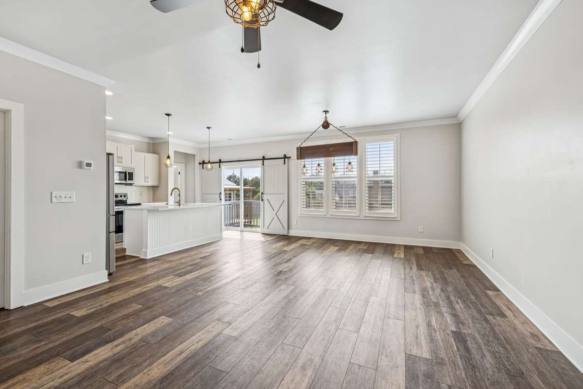 Step into this adorable home with so much to offer and make it HOME. This 4 bedroom, 3 bath home recently professionally cleaned, offers high end finishes, open concept layout, 2 bedrooms downstairs, quartz countertops in the kitchen and primary bath, soft close cabinets and tons of storage. Plantation blinds throughout, custom light fixtures, new paint, upgraded to closed- in exterior soffits. In the back yard, the shed with finished interior, covered porch & electrical, fire pit, string lights and flower beds. Large corner lot goes beyond the fenced in area. Roof approximately 5 years old, Brand new Samsung Washer.
