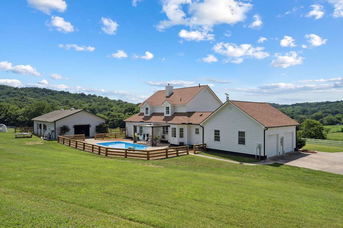 Step into a place where country charm and modern comfort come together. This exceptional Middle TN property spans 45 acres, fully fenced and cross- fenced, making it a perfect private equestrian estate. You will enter the property through a gate, crossing over Ashland Creek via a newly fortified concrete bridge that supports 80, 000 lbs. This property offers a main residence, a barndominium, 4 barns, and a 40x60 shop. The main residence has been beautifully renovated w/ no detail overlooked, specifically the kitchen w/ custom cabinetry, high end appliances, and elegant finishes. All bedrooms are thoughtfully arranged. The primary bedroom is conveniently located on the main floor, while 4 additional bedrooms are situated upstairs, each with its own full Jack and Jill bathroom. Also, a functional layout featuring a dedicated laundry room and mudroom, conveniently located adjacent to the 2 car garage along with a separate office or flexible- use room. ( See specific details of residences and barns in website attached in Links section) Spend your mornings, evenings, or even all day by the salt water in- ground pool w/ brand new pool liner, generator, control panel & filter. The barndominium is 925 sq ft w/ 2 bedrooms and 2 full bathrooms. It also features hardwood and tile flooring, galley kitchen, laundry room, front porch, and an outdoor asphalt parking pad. This space is perfect for those seeking a private estate for their equestrian needs to run as a business or rent it out for passive income. The separation of the main residence from the barndominium is approximately 500ft which ensures continued privacy. The only true way to really appreciate this exceptional Middle TN property is by experiencing it in person. We highly encourage you to call and schedule a private showing of this stunning luxury home and private equestrian estate. Listing agent will be present for all showings. ( Upgrades and repair list for the entire property is available in the Documents section)