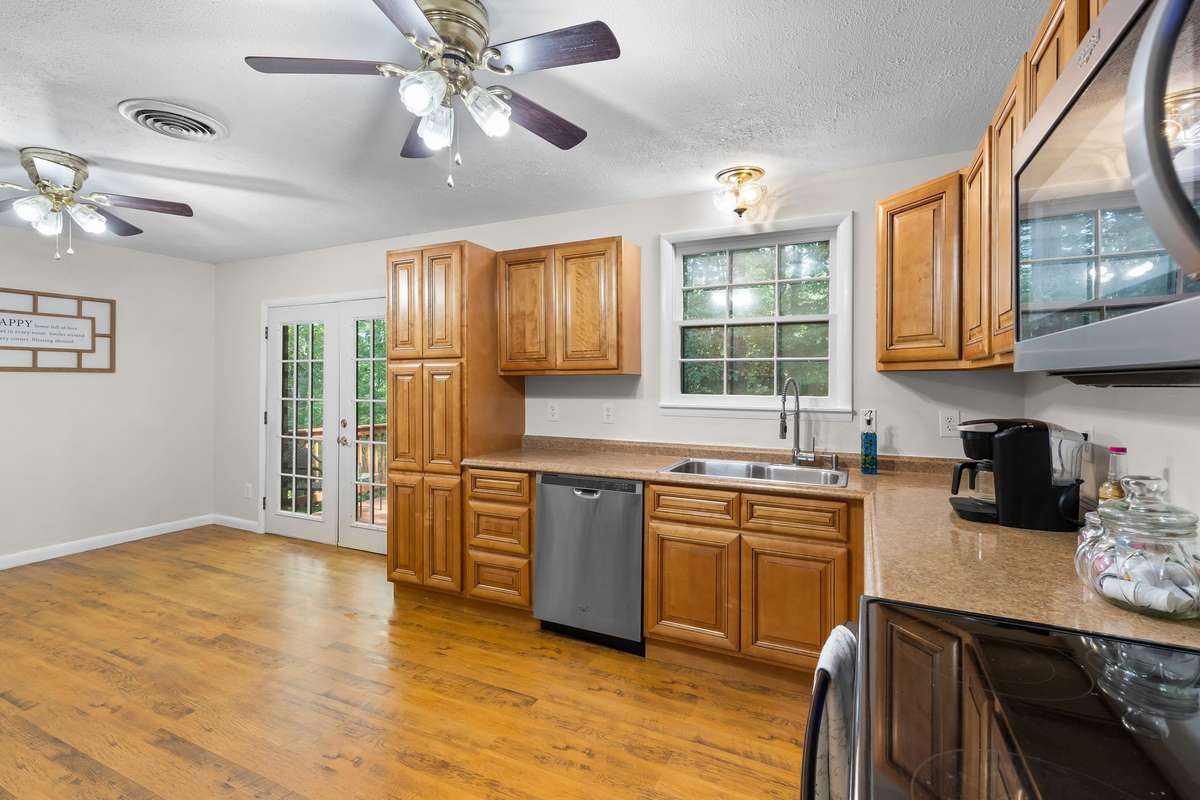 This spacious home offers multiple areas to spread out and enjoy. The main level features three bedrooms, one and a half baths, and a large, open kitchen. The finished basement includes a second full kitchen, an oversized garden tub, tile flooring, a family den with combination living space, and a versatile office/ media area. The driveway has plenty of room to park six cars. Recent updates include a new roof, new gutters, and fresh interior paint, providing peace of mind for the new owner.