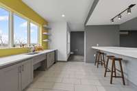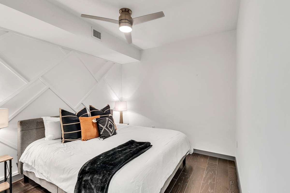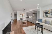 Step inside to find an open layout with stainless steel appliances, quartz countertops, a custom island with seating and storage, and grey cabinetry accented by under- cabinet lighting and a designer backsplash. The spacious living room features an extra corner window, while the bedroom includes a fabulous walk- in closet with stacked washer/ dryer. The full bath boasts a large tiled walk- in shower for a spa- like retreat.