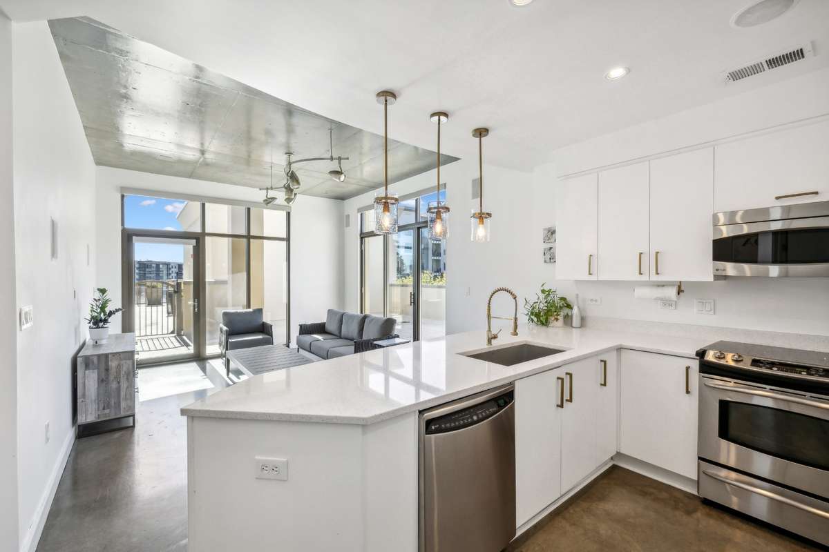 Welcome to the Rhythm, Unit 511! This meticulously renovated corner unit offers 848 square feet of modern living space, featuring one bedroom and one bathroom. The property boasts abundant natural light and a unique 600+ square foot private terrace with direct access to the amenities deck, providing an exceptional outdoor living experience.