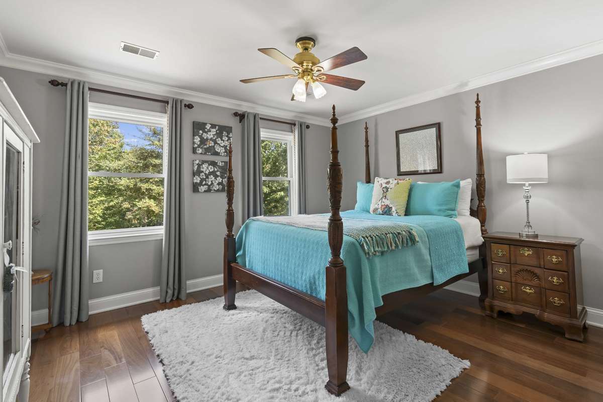 The primary suite offers a luxurious retreat with a fully updated bathroom, including a custom tile walk- in shower, double- sink vanity, double tailored walk- in closets. The great room impresses with built- in lighted cabinetry, soaring ceiling and windows, a cozy fireplace, creating a warm and inviting atmosphere.
