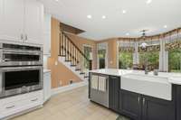 Inside, the home features rich Brazilian walnut hardwood flooring, a fully remodeled kitchen with ceiling- height lighted cabinetry, sleek quartz countertops, a built- in microwave/ oven, propane gas cooktop, and an eye- catching farmhouse sink—perfect for entertaining or everyday living.