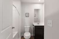 Upstairs, the primary suite features double vanities and a walk- in closet, while the guest bedrooms offer ample storage and a convenient nearby laundry room. Enjoy your morning coffee or weekend barbecue on the patio overlooking your backyard.