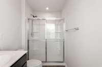 Upstairs, the primary suite features double vanities and a walk- in closet, while the guest bedrooms offer ample storage and a convenient nearby laundry room. Enjoy your morning coffee or weekend barbecue on the patio overlooking your backyard.