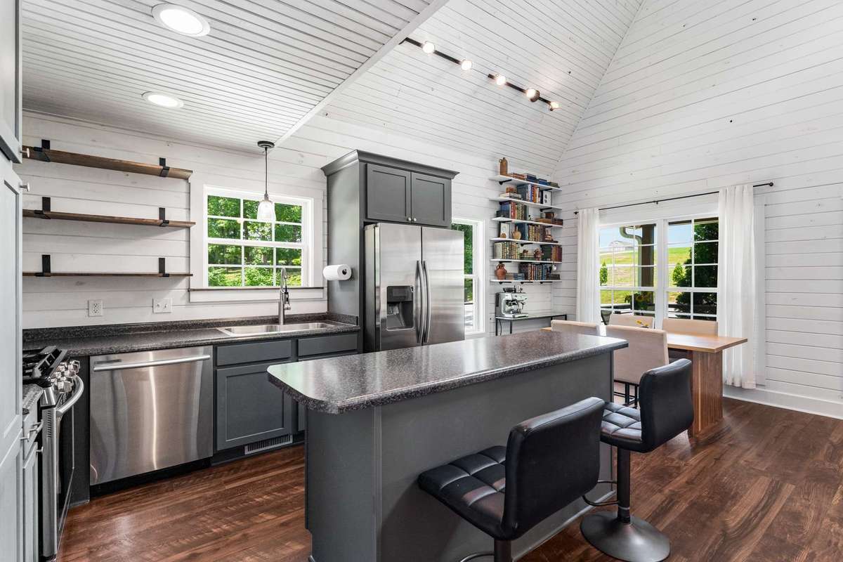 Modern charm and character meet peaceful privacy on nearly 2 acres with this truly unique property! A HUGE 40x30 garage/ shop makes the perfect space for hobbyists, artists, crafts, storage, or even a home- based business! Soaring vaulted ceilings, wood accents, and natural light pouring in from every angle give this home warmth and personality that you won’t find in cookie- cutter spec builds.