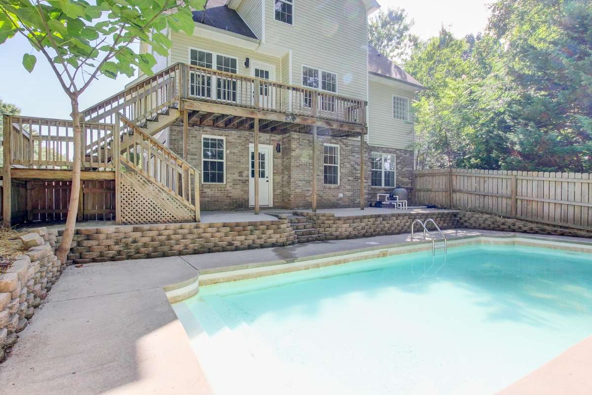 Welcome to 288 Sunny Slope Court, an elegantly appointed residence nestled in the charming, highly desired Poplar Hill community in the 37043 zip code of Clarksville, Tennessee. With its renovated contemporary design and spacious floor plan, this home offers refined living across 2, 585 square feet. Boasting four bedrooms and two and a half bathrooms, it provides ample space for relaxation and entertainment. Upon entering, you' re greeted by high ceilings and an inviting atmosphere accentuated by hardwood laminate floors and a stylish gas log fireplace. The chef' s kitchen is a culinary delight, featuring quartz countertops, eat at island, stainless steel appliances, a walk in pantry, and conveniences such as a dishwasher, refrigerator with ice maker and disposal. The adjoining dining area opens to a deck overlooking the in ground pool, perfect for outdoor dining. The primary suite is a serene retreat, complete with a luxurious en suite bath featuring a walk in closet, dual vanities, a freestanding soaking tub and a walk- in tile and glass shower. Additional highlights include short commute to top rated schools, high speed internet, utility room, central heating and air conditioning, ensuring year- round comfort. Step outside to discover your private oasis, where a in ground pool awaits, surrounded by a generous lot of . 71 acre wooded lot. The outdoor space offers a covered front porch, covered patio and deck, ideal for hosting gatherings or unwinding in peace. With amenities such as a full partially finished basement with two car garage and plenty of concrete driveway parking, convenience is at your doorstep. Pool was last open in Spring 2025.