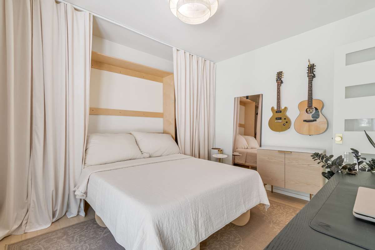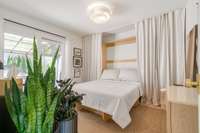 Both bedrooms offer ample storage with an extra large closet in the primary and a Murphy bed and storage in the guest room making it the perfect dual use space.