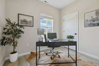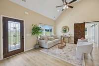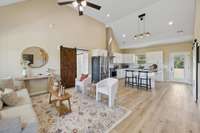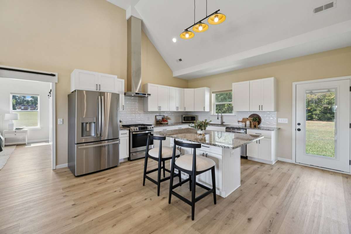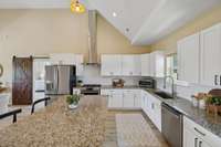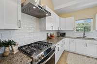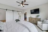 The kitchen is a chef’s delight, featuring a brand- NEW GAS STOVE, custom hooded vent, and all appliances included, even the washer and dryer! Custom barn doors add a touch of rustic elegance, while the spacious walk- in closet keeps everything organized and tidy.