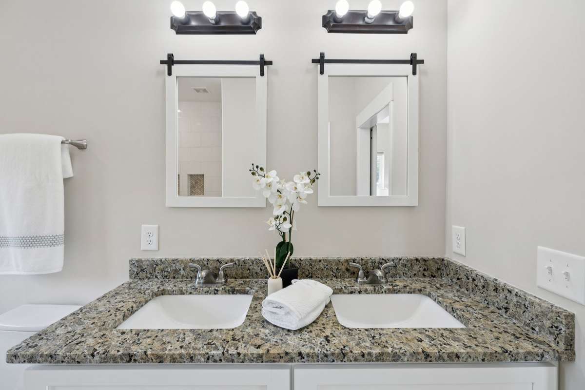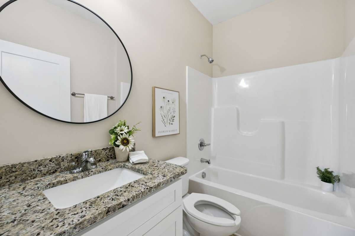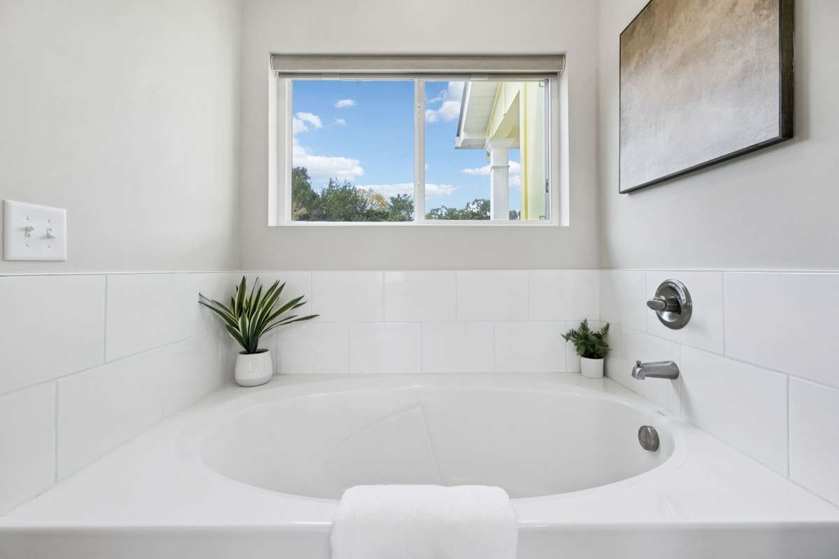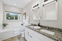 Your master suite feels like a retreat of its own, with a large custom walk- in shower and a relaxing garden tub, perfect for unwinding after a long day.