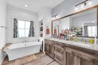 Welcome to 117 Bostick in Easthaven! This 2020 built stunner sits on a large cul- de- sac lot and blends modern design with everyday comfort. The kitchen is the star of the show with a huge island featuring a white farmhouse apron- front sink and barstool seating, abundance of counter space and cabinetry, granite countertops, stainless steel appliances, and a beverage center with wine fridge—all designed for both style and function. The main- level primary suite is a true retreat with a freestanding soaking tub, tile shower, and dual vanities. Upstairs, three additional bedrooms are complemented by a generous bonus room and large walk- in attic storage. Out back, enjoy a private yard with a black iron fence, screened porch, and covered patio—perfect for relaxing or entertaining. This one checks all the boxes—come take a look!