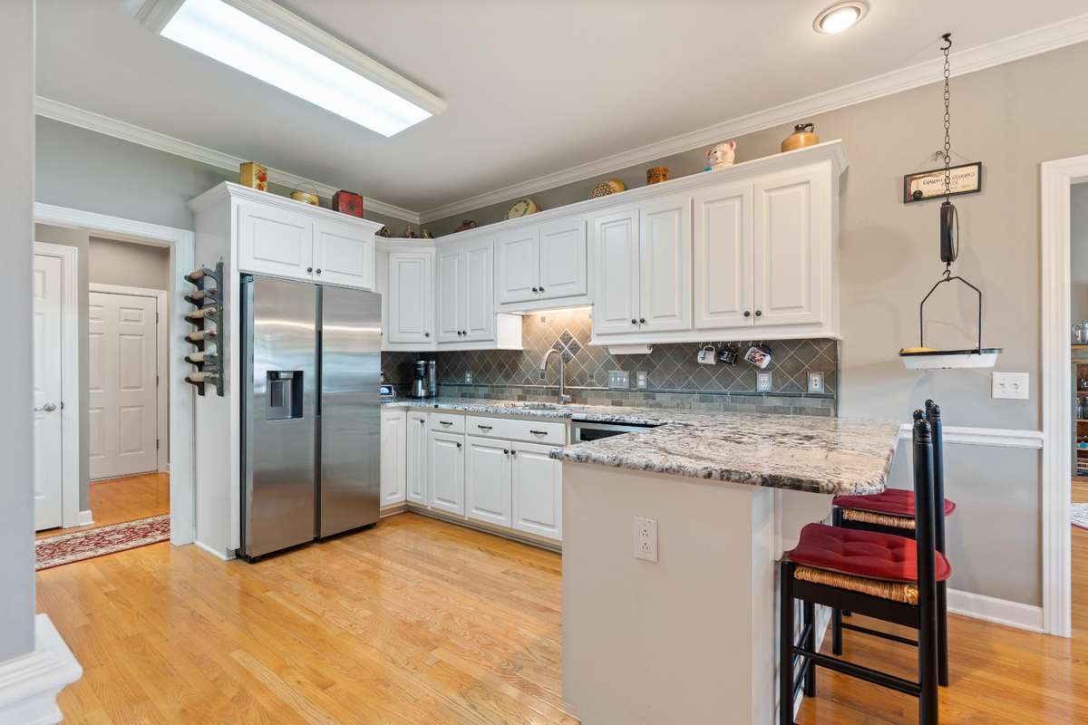BACK ON THE MARKET WITH A BRAND NEW ROOF! One level living at its finest. This beautifully maintained 5- bedroom home offers an open- concept layout with soaring ceilings and rich inlaid hardwoods. Kitchen features granite countertops, stainless steel appliances, a double oven, and a gas cooktop—perfect for everyday living and entertaining. Enjoy the year- round Florida room overlooking a fully fenced backyard with organic garden beds and a drip irrigation system.