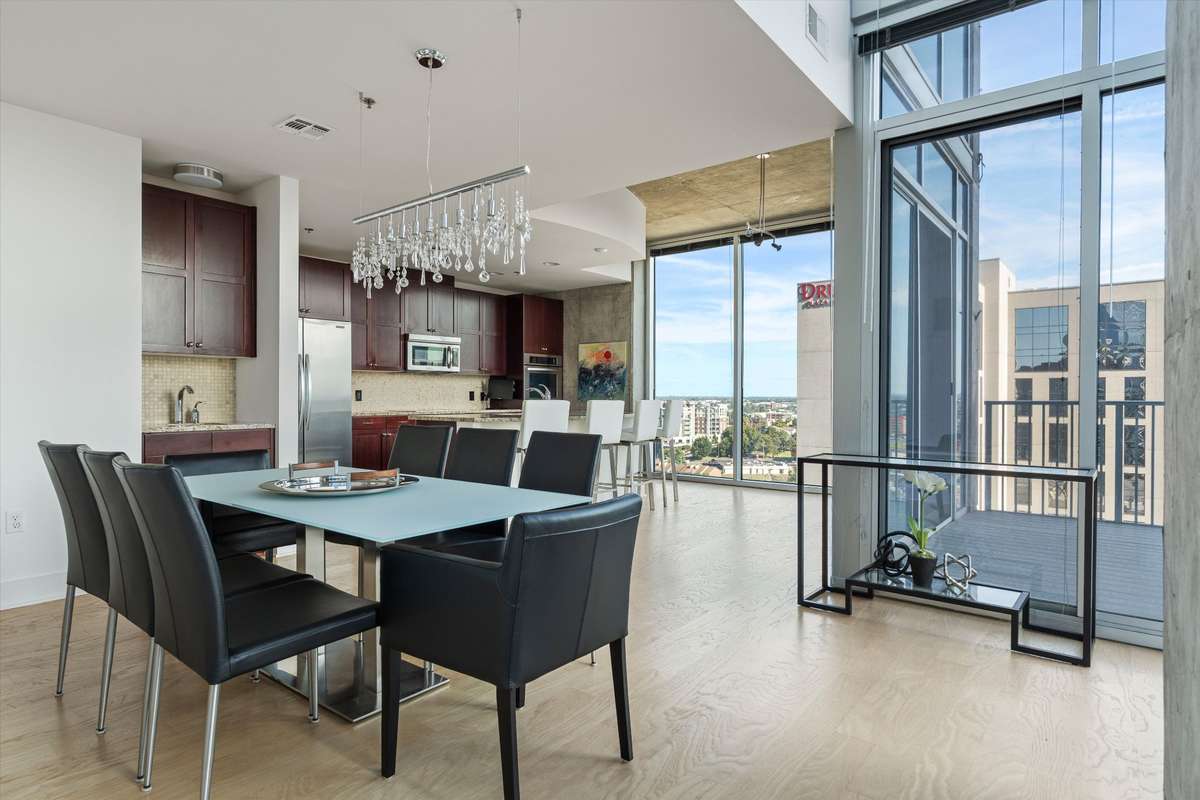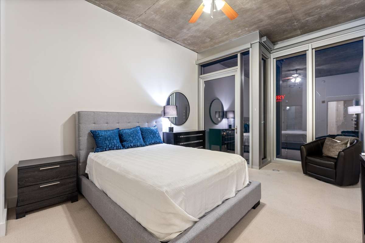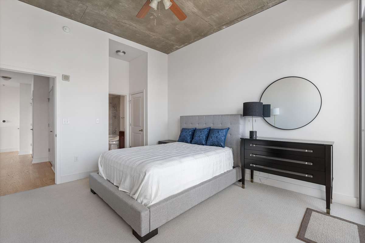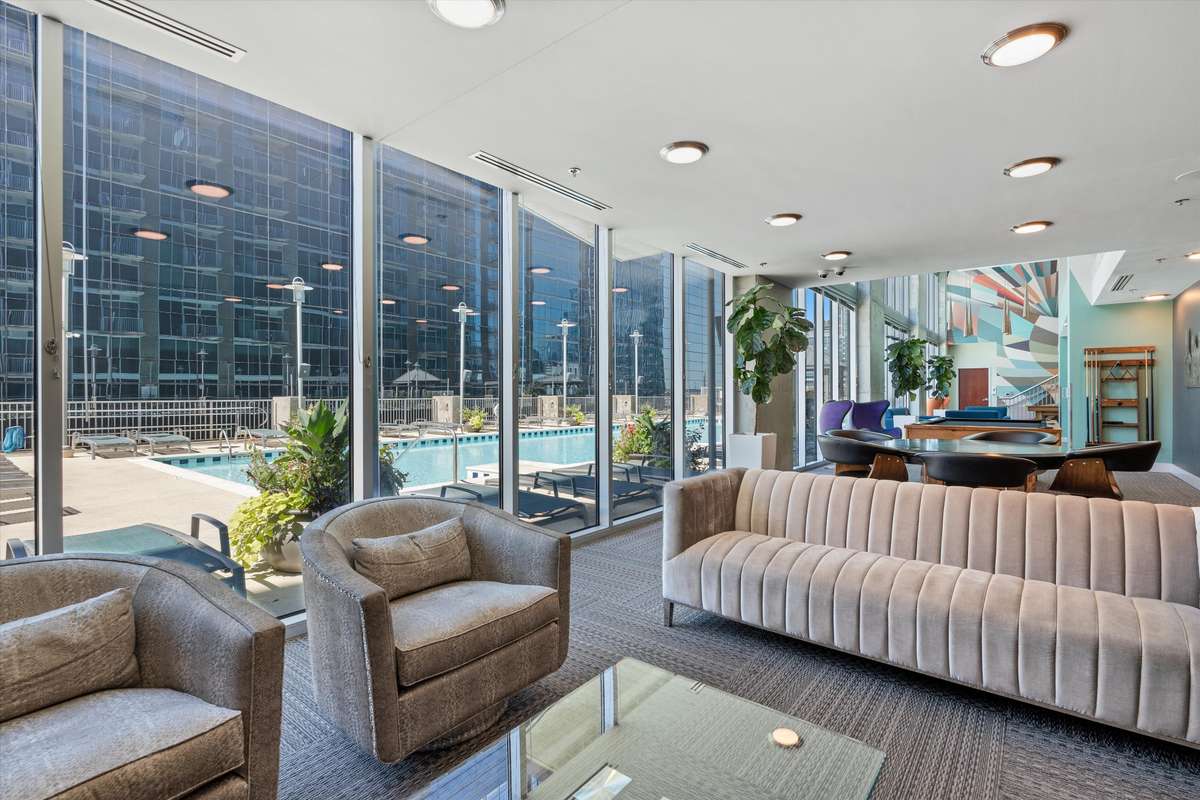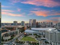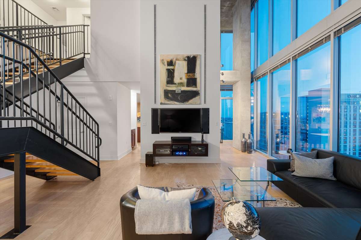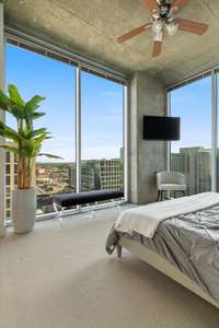This two- story condo features 25- foot floor- to- ceiling windows that create a bright and airy atmosphere while offering spectacular views of the Nashville skyline and the beautiful Tennessee countryside. Relax or entertain on not one, but two private balconies, seamlessly blending indoor and outdoor living.