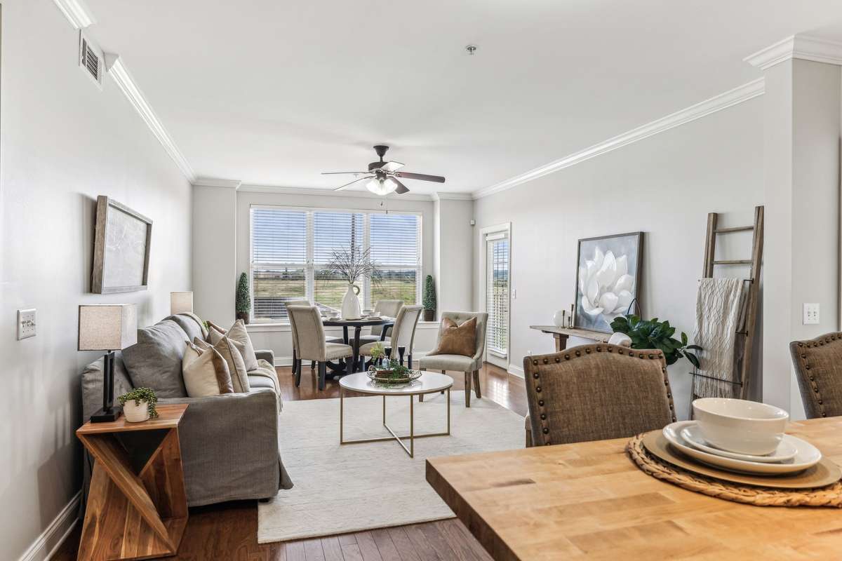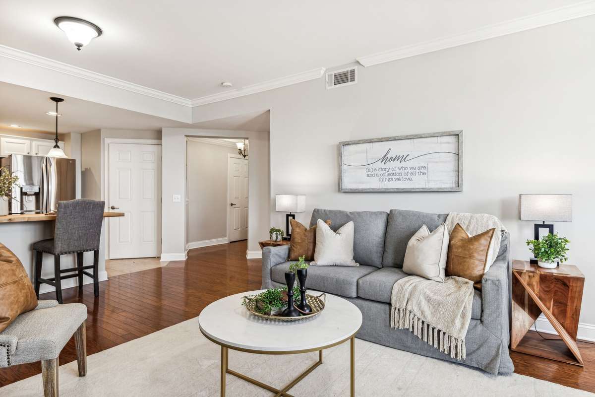Rare one level living immaculate condo in highly desirable Tollgate Village. Unit comes with an ATTACHED GARAGE. Pristine 2 bedroom 2 bath condo with generously sized bedrooms and bathrooms. Open concept living with spacious kitchen, walk in pantry and laundry room make this an ideal space for hosting entertaining. This condo is move- in- ready with pristine wood flooring, tiled bathrooms, freshly carpeted bedrooms, fresh paint, brand new HVAC system, granite countertops and crown moulding. This condo also comes with 2 locked storage units for your convenience. Elevator access and coded entry doors. Resort style amenities including a pool, walking trails, dog park, pickle ball, basketball, bbq area with fireplace and large clubhouse for your next big event. Walk to local restaurants in the community or sip iced tea from your covered balcony. Don' t miss this one!
