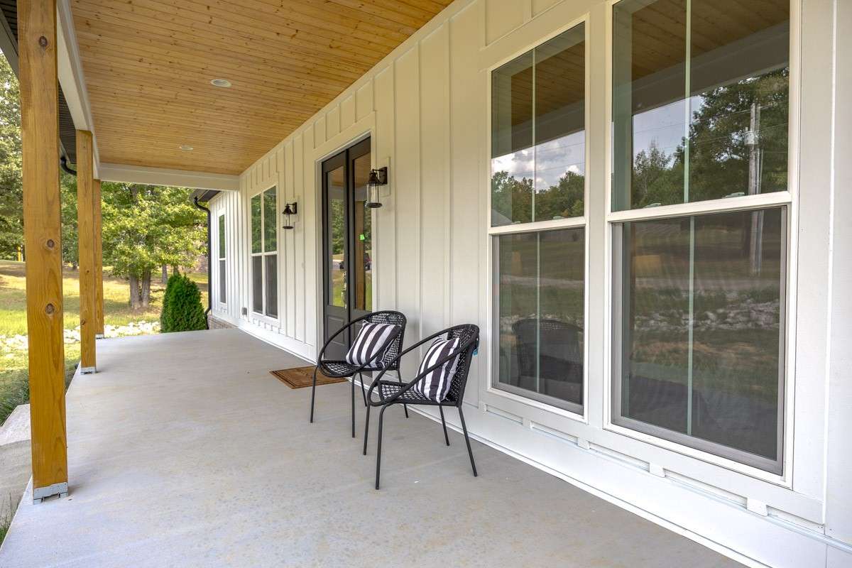 The exterior presents classic board- and- batten siding, composition shingles, and a welcoming front porch, perfect for enjoying the outdoors. The covered back porch provides an ideal space for entertaining, with accommodations for an outdoor kitchen to elevate gatherings.