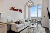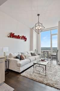 Turn your dreams of living in the city… into reality. With a 98% walkability score, your new home will be STEPS from all downtown Nashville offers. Walk into your foyer lined with designer natural grasscloth Phillip Jeffries wallpaper. Breathe in home, exhale the city being 41 floors up. In this condo you will find a built- in bar, hall closet, & walk- in primary closet all customized by California Closets. While in the clouds of this home, you will experience captivating sunsets and firework views from the baseball stadium.
