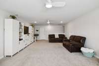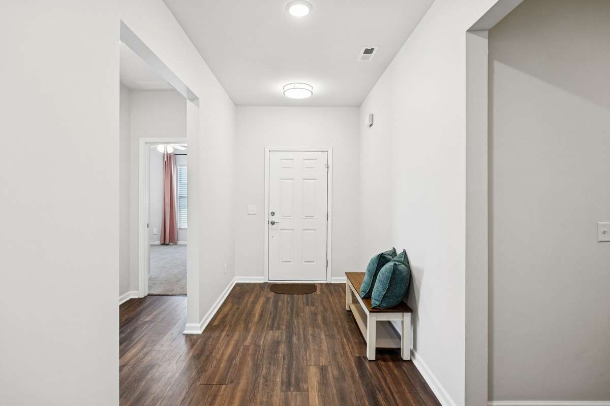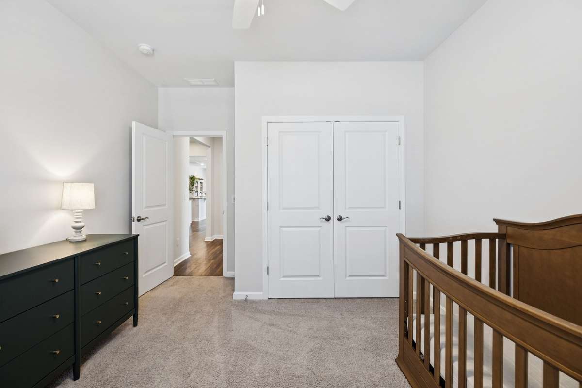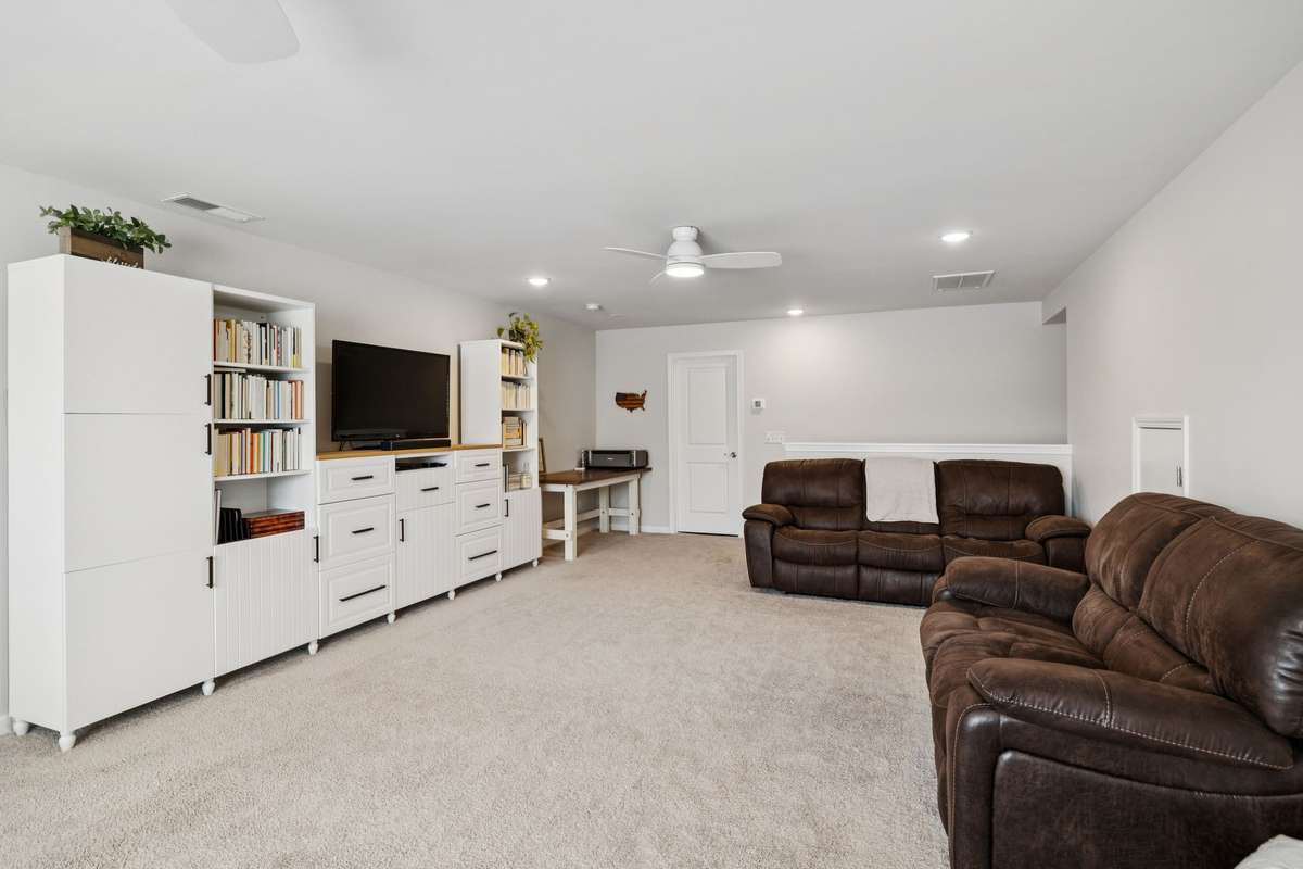 Beautiful, Open- Design home on a spacious, Fenced lot that backs to mature TREES! Located in the section with POOL access. Option to convert flex room or upper level room to a 3rd Bedroom. The main level features a private primary suite, a second bedroom, and a flexible room that could convert to a third bedroom. The generous kitchen shines with granite counters, crisp white cabinetry, and a sprawling island — perfect for cooking and entertaining. The dining area walks out to a covered back porch for easy indoor/ outdoor living. The primary suite is a retreat with a trey ceiling, a roomy shower, and a walk- in closet, plus peaceful backyard views from the window. Upstairs finds an exceptionally large recreation room with a walk- in storage closet. This section of the neighborhood offers access to the neighborhood, beautiful pool, plenty of lounge space, and a firepit to enjoy sunsets. Very walkable neighborhood- parks, dog park, sidewalks and close to retail/ restaurants!