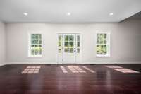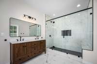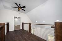 The owner’s suite offers a relaxing retreat after a long day, complete with a spa- inspired bathroom and a floor- to- ceiling tiled shower. From the back porch, take in serene views of the creek that winds through the property—an ideal spot for morning coffee or unwinding in the evenings.