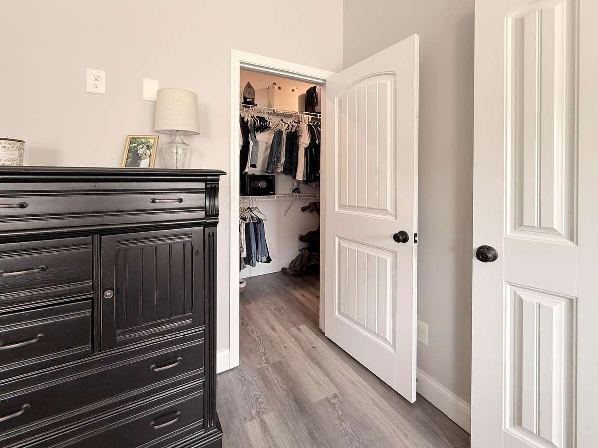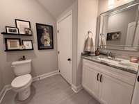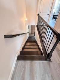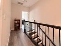 The first floor offers a true open- concept design, perfect for entertaining and everyday living. The kitchen is the centerpiece, featuring a center island with an elevated snack counter, ideal for casual dining or gathering with friends. Quartz countertops shine against the white box- style cabinetry, enhanced with custom millwork and accented by rubbed oil hardware for a timeless touch. A decorative tile backsplash and a full suite of stainless- steel appliances complete this chef- friendly space. Just off the kitchen, you’ll find a dedicated laundry room with extra storage—a rare and convenient feature in this style of home. Patio doors lead to your very own private fenced yard, offering plenty of room for grilling, outdoor dining, or a safe space for pets to play.