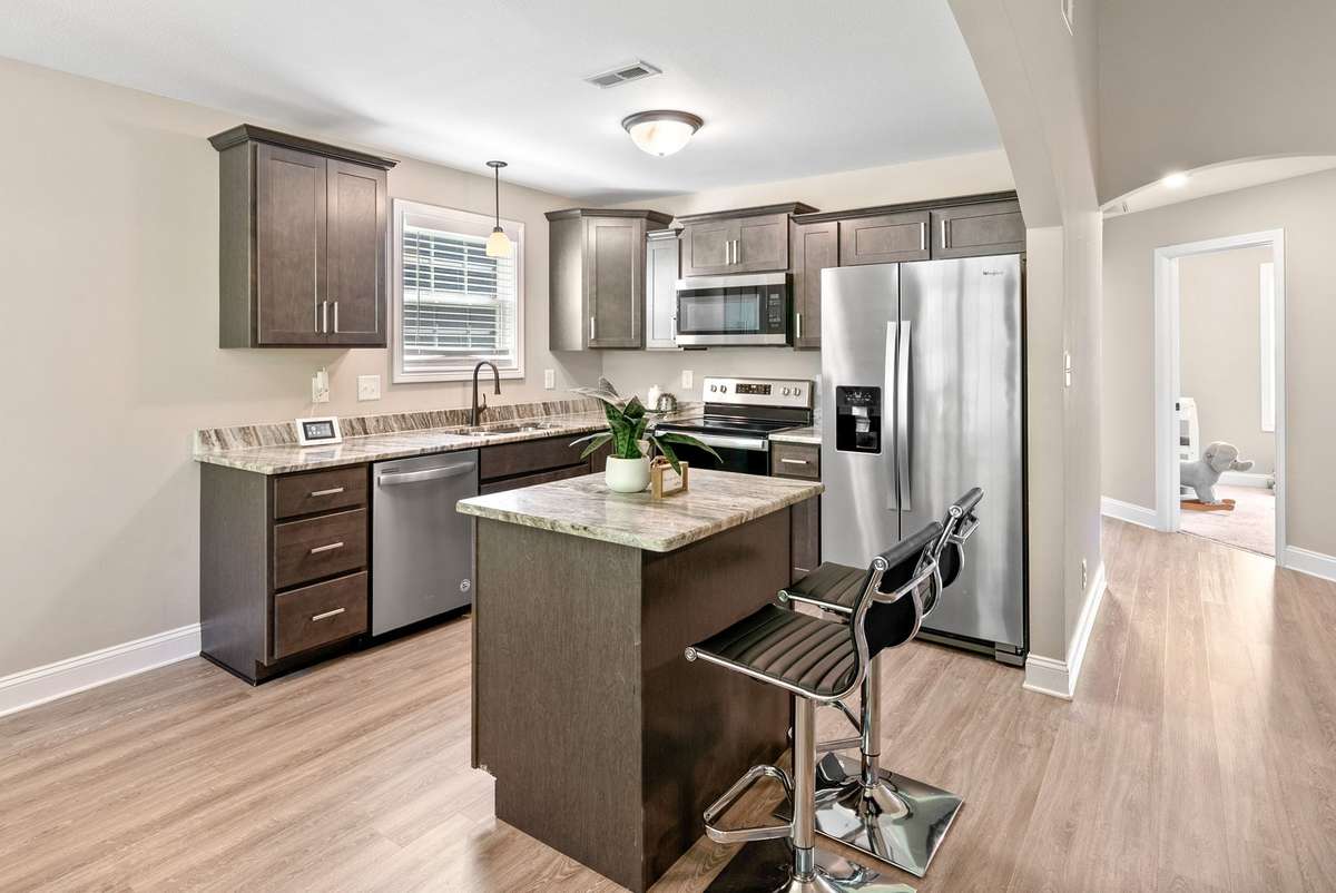 Step inside this stunning 3- bedroom, 2- bath single story home in the highly desired SANGO community and see why it’s the one you’ve been waiting for! With vaulted ceilings, an open- concept layout and a picturesque wooded view, this move- in- ready gem feels even more spacious in person! Built in 2020, the home features a beautifully designed floorplan with an airy living room & open kitchen with stainless steel appliances, a center prep island, gorgeous cabinetry, and sleek granite countertops. The oversized primary suite has a beautiful tray ceiling, en- suite bath with double sinks and custom tiled shower. Across the home, you' ll find two additional spacious bedrooms with plenty of storage and a full bath. Step outside to the covered back deck, located just off the kitchen and dining area, perfect for grilling and enjoying the serene wooded view. This property offers serene surroundings with easy access to I- 24, Ft. Campbell (~ 15 mi) , Nashville (~ 45 mi to Nashville) , and parks ( Rotary Park ~ 2 miles) . This home provides easy access to everything you need!
