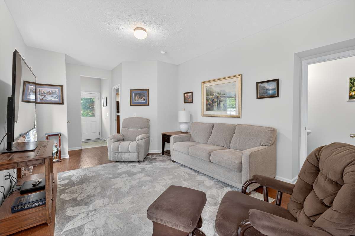 Welcome to this conveniently located property! End townhome unit offers one level living with the primary bedroom and full bath on the main floor. Also, located on the main floor is a spacious living room, 1/ 2 bath, dining room, kitchen with all appliances to remain and laundry located across from the primary suite. Two bedrooms and full bath with spacious rec room upstairs. Neutral paint color throughout. New stove, dishwasher and microwave ( 6 months old) . Most windows replaced with blinds and curtains added. Toilets downstairs replaced. Double drive parking and 1 car garage.