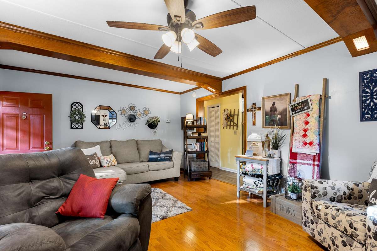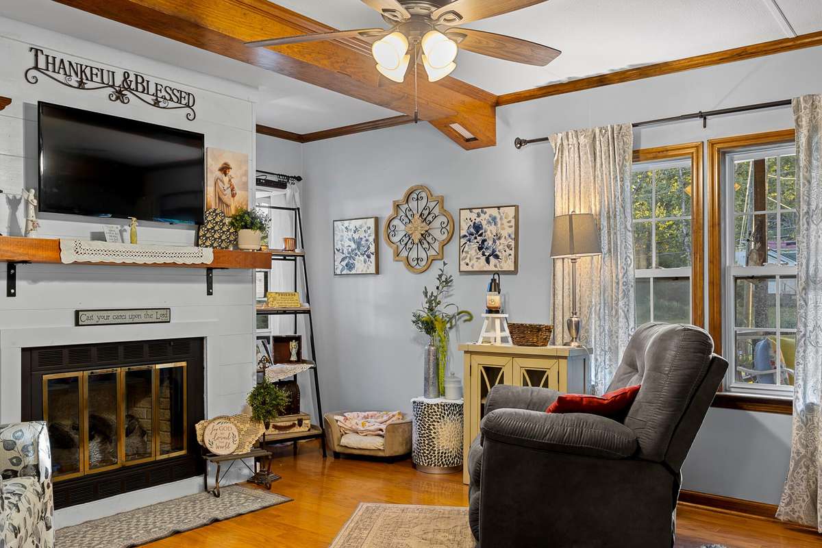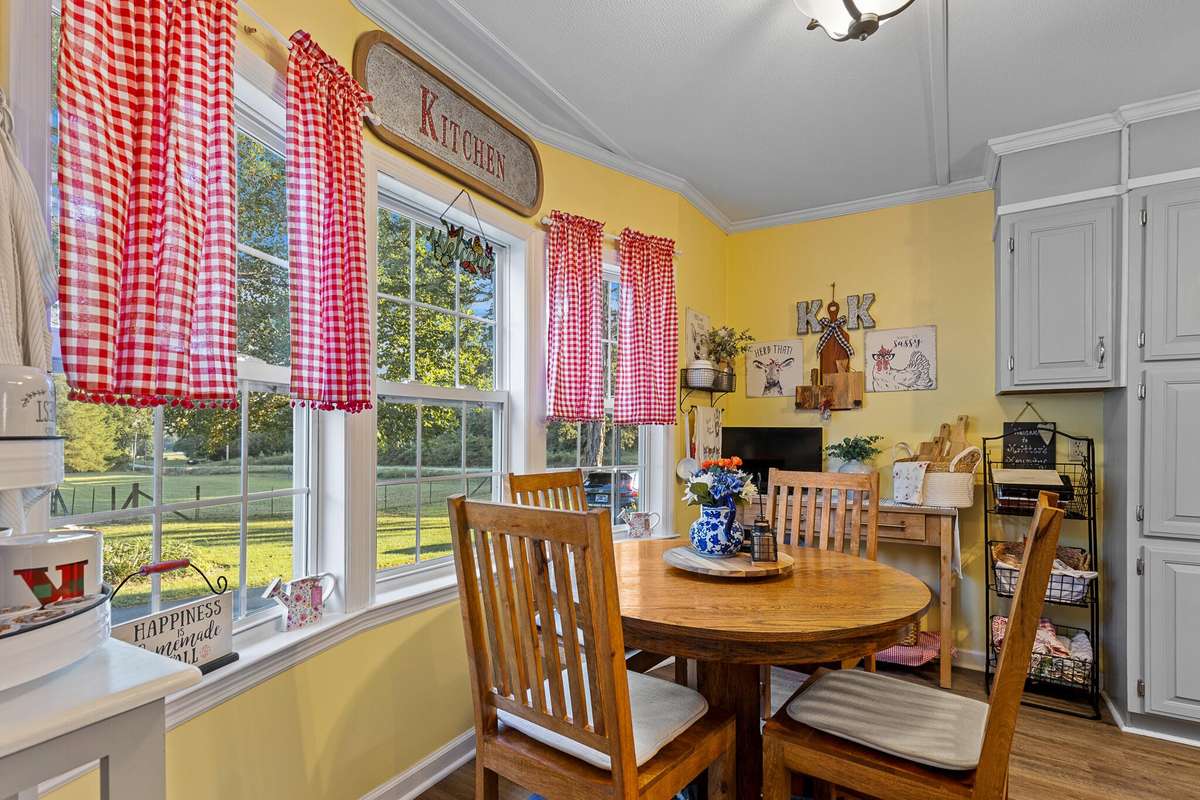 Welcome to 4915 Spring Place Road, a charming 3- bedroom, 2- bathroom home nestled on approximately 2 acres of flat, usable land ideal for both livestock and wildlife. Step inside the living room where a cozy fireplace takes center stage beneath rustic wood- beamed ceilings, creating the perfect gathering place. The kitchen is a true standout with updated cabinetry, a built- in island cooktop, wall oven, convection oven, and stainless steel refrigerator and microwave. A sunny breakfast nook framed by bay windows makes every meal feel special.