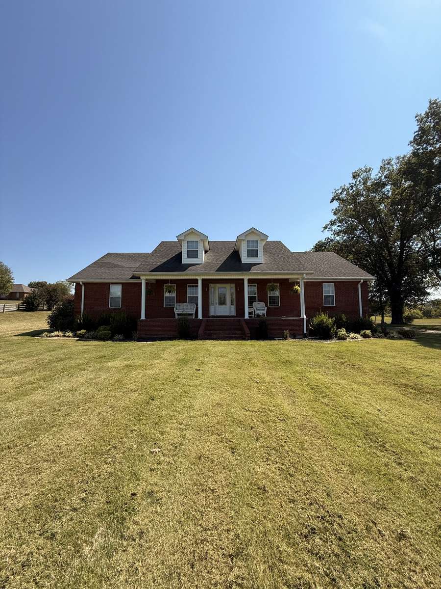 Discover a rare opportunity to own this beautifully maintained all- brick home nestled on 5. 05 picturesque acres. A paved driveway lined with mature trees welcomes you to this serene retreat. This spacious 2079 sq. ft. residence features 3 bedrooms, a dedicated office, and 3 full bathrooms. This includes a primary suite with a private en suite. The home offers a generous living room, a large kitchen ideal for entertaining, and a blend of hardwood, tile, and carpet throughout.