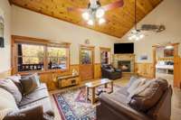 Outside, guests can relax by the custom wood- burning firepit, grill on two park- style charcoal grills, or unwind on the spacious covered decks surrounded by mountain beauty. Every bedroom offers a Smart TV and private bath for comfort and privacy.