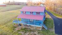 The perfect Dale Hollow Lake vacation or forever home. The setting is perfect unrestricted 1. 17 acres surrounded by beautiful views of the hills and pastures. The main level has an open floor plan with vaulted ceilings and a fireplace. Also, the master suite with handy laundry in master bath is located on the main level. The upstairs is another full bath, spacious bedroom and an office/ play area. Just imagine enjoying a cup of coffee on your covered porch looking at those views. The detached garage and outbuilding storage for your garden and lawn supplies. All this and just mintues away from several marinas. Seller willing to pay up to $ 5, 000. 00 in closing costs.