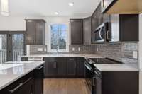 The gourmet kitchen impresses with gleaming granite countertops, stylish tile backsplash, and stainless- steel appliances. The luxurious primary suite serves as your own private sanctuary, boasting a walk- in closet with custom wood shelving and a spa- inspired bathroom featuring a tiled shower and double vanity with granite countertops. Secondary bathrooms showcase a tiled surround tub/ shower combo and the same attention to detail found throughout the home. The thoughtfully designed, functional layout is perfect for modern living, with convenient second- floor laundry and an attached one- car garage.