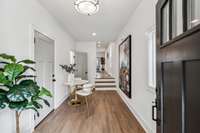 The luxurious primary suite serves as your own private sanctuary, boasting a generous walk- in closet with custom wood shelving and a spa- inspired bathroom featuring an elegant, tiled shower and double vanity with granite countertops. Secondary bathrooms showcase tiled surround tub/ shower combinations and the same attention to detail found throughout the home. The thoughtfully designed, functional layout is perfect for modern living, with convenient second- floor laundry and an attached one- car garage.