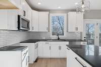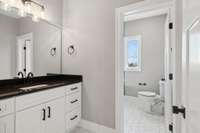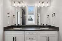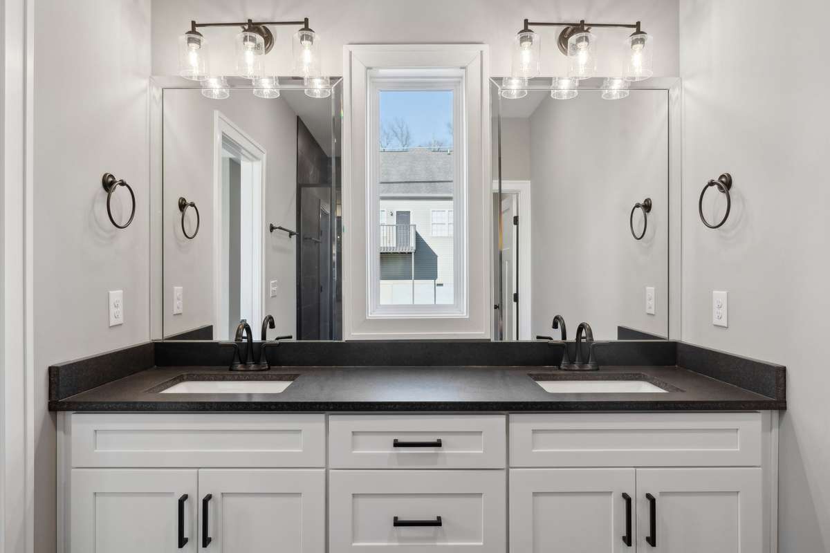 The gourmet kitchen impresses with gleaming granite countertops, stylish tile backsplash, and stainless- steel appliances. The luxurious primary suite serves as your own private sanctuary, boasting a walk- in closet with custom wood shelving and a spa- inspired bathroom featuring a tiled shower and double vanity with granite countertops. Secondary bathrooms showcase a tiled surround tub/ shower combo and the same attention to detail found throughout the home. The thoughtfully designed, functional layout is perfect for modern living, with convenient second- floor laundry and an attached one- car garage.