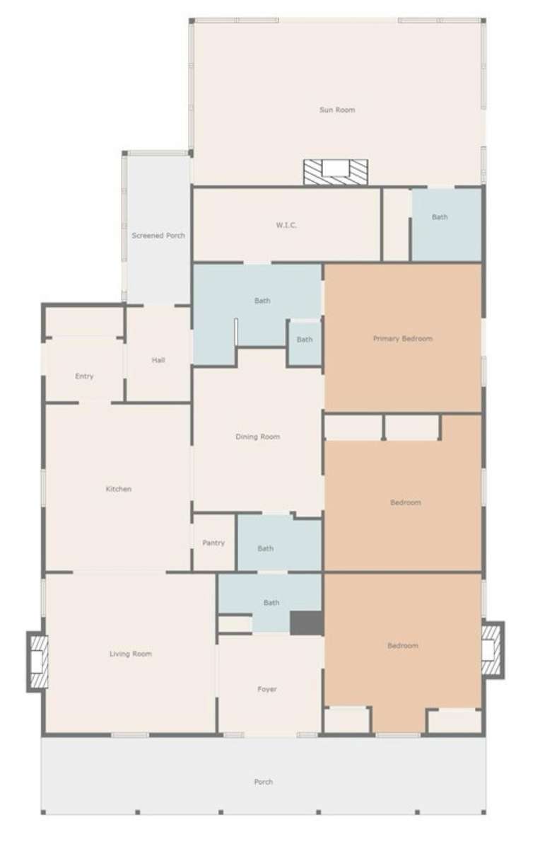 OPEN HOUSE SUNDAY 2- 4!! ! Breathtaking, beautifully renovated home in beloved Downtown Murfreesboro that is one of the towns most historic treasures! Less than a 10 minute walk to the square allows for various dining, entertainment, shopping, or a haircut! Built in the 1840s, industrial elements were added to this ONE level home and extensive renovations done. The charm of the original brick is exposed and some of the original doors, floors, and other touches. This home was featured in VIP Murfreesboro after the breathtaking glass sunroom was added. Enjoy entertaining in this heated and cooled modern oasis added space with outdoor wet bar! The “haint blue” front porch ceiling is a southern American tradition with a long- standing belief that painting a porch ceiling blue helps repel insects like wasps or mosquitoes. The high ceilings are spectacular throughout the home! This is truly a unique house with so many custom features. One of the best features is the huge yard (. 33 acres) and front porch! Large central custom kitchen and dining are truly a show stopper with built in wine fridge and storage. Too many features to list - this home is a must see in person!
