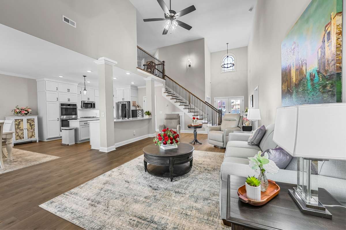 This is an excellent opportunity for a buyer to purchase an upscale home! The seller’s loss is your gain! The floor plan has the best VIBE and all the upgraded features! It has an open concept, but it has many private areas to relax and chill. The bedrooms are all perfectly spaced apart, so that everyone has their own space and bathrooms! The primary and guest bedrooms are downstairs and there are two bedrooms upstairs with a bonus room! There is a formal dining room with a coffered ceiling that can be also used as an office. The primary suite is every owner' s dream with an alcove with beautiful arched windows for a sitting area, a large shower, and a soaking tub in the large bathroom! The laminate flooring is amazing throughout most the main floor, the bathrooms have porcelain tile, and the upstairs that is mostly carpeted areas with some laminate and tile. The exterior of this home is all brick with stone accents, and it has a 3 car garage, concrete driveway, covered front porch, deck and a patio! To sweeten the price, the seller is adding the refrigerator, washer, and dryer! The seller is ready for a qualified buyer to have very favorable terms well below what they paid for it, so don' t miss this opportunity!