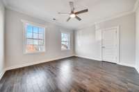 Brand New Quality built home! Features 10- foot ceilings, rich hardwood floors throughout ( no carpets) , Quartz island kitchen with upscale stainless appliances! Large great room has cozy fireplace w/ gas logs. deluxe wood build- out closets and pantry. Bedroom or office down, large primary bedroom features quartz primary bath suite, and gorgeous 19x10 covered balcony! 4 Bedrooms 4 full baths 3 with private baths! Large bonus room up. Large laundry room w/ granite top sink, upper and lower cabinets 2 Car attached ally access garage and parking, fenced yard and more! 5. 875% Conventional from preferred lender!