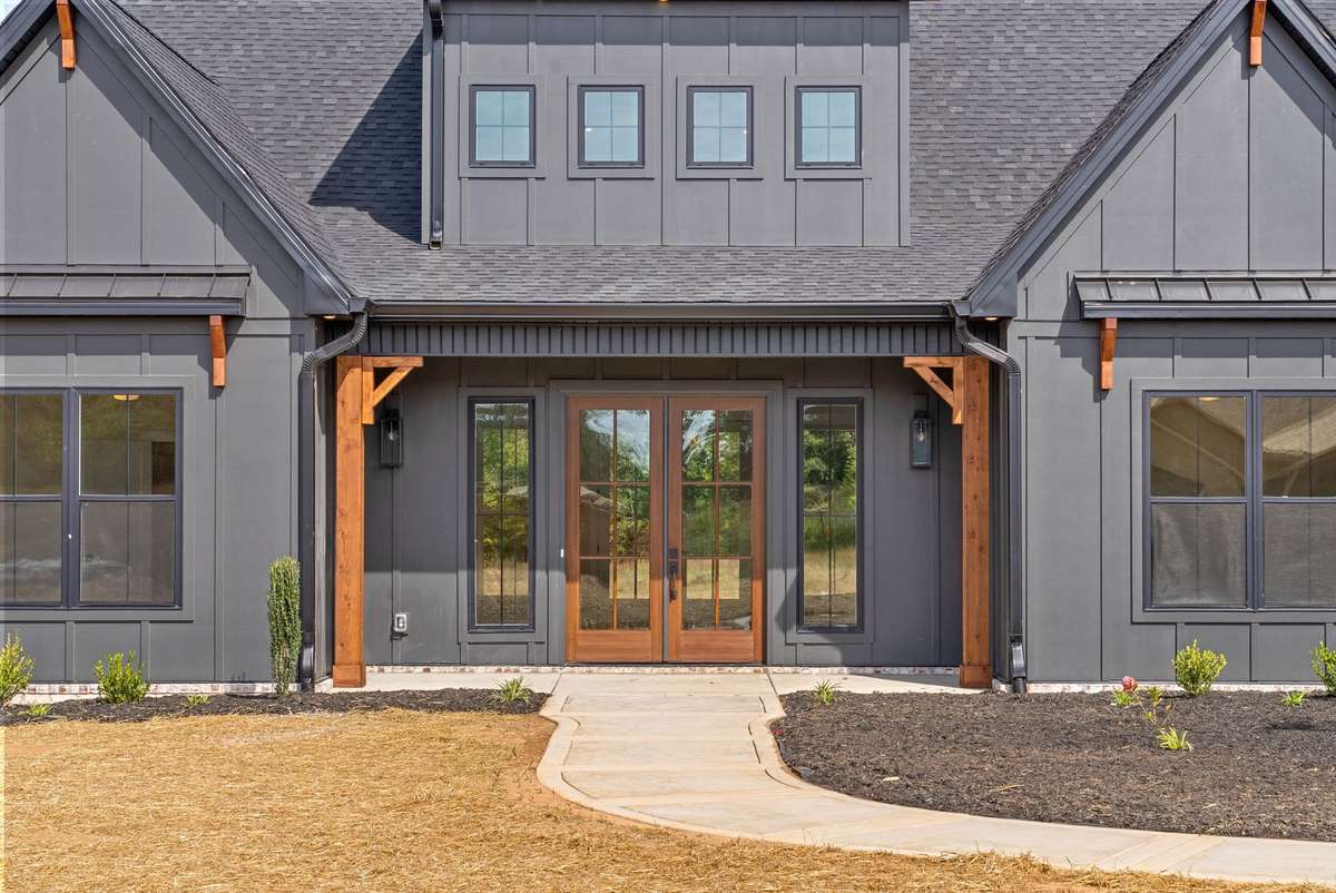 Introducing the Birchwood by Homefront Builders—a seamless blend of luxury and functionality set on a picturesque, tree- lined 1. 92- acre lot. This exceptional home features an abundance of windows in the kitchen, flooding the space with natural light, while the elegant French doors in the living room provide breathtaking views of the surrounding landscape. The kitchen is designed for both beauty and practicality, complete with a large island, double ovens, and an expansive walk- in pantry. The primary suite offers dual closets and an ensuite with separate vanities, a tiled shower, and a relaxing soaking tub. Two spacious bedrooms share a thoughtfully designed bathroom with dual sinks, and each has its own walk- in closet. A versatile fourth bedroom can function as an office or additional bedroom, complete with yet another walk- in closet. The home also includes a convenient half bath, a mudroom with a drop station, and a large laundry room with cabinetry and a sink. High- end designer finishes, such as quartz countertops, custom trim, and upgraded cabinetry, elevate every space. An expansive 3- car garage completes the home, ideal for vehicles, extra storage, or a home gym. Builder has other lots and floor plans. Homefront Builders homes are backed by a 10 year structural warranty! Photos are sample photos only, house has not been started yet.