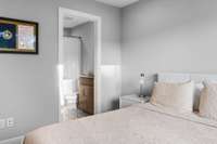 Both bedrooms are ensuite with spacious walk- in closets, and the primary suite offers a spa- like bath with frameless glass shower, dual vanities, and custom tile. Other highlights include a built- in office space, shiplap accent wall, valet bench, and a premium security system with multiple cameras. Energy Star certification ensures efficiency and low utility costs.