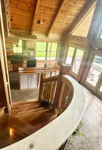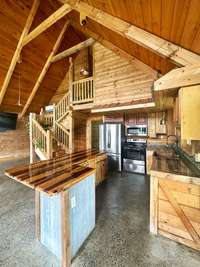 Spacious & Open Layout: High ceilings and a wall of windows that flood the home with natural light, providing breathtaking views of the surrounding countryside. Three glass doors offer seamless access to the wrap around porch.