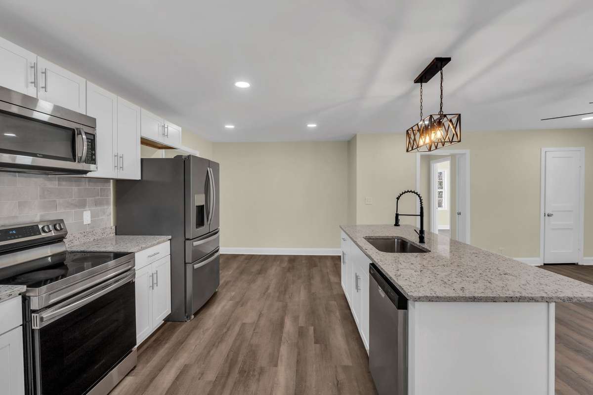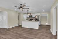 Beautiful home on a quiet street in a non- HOA family friendly subdivision, Brand New Concrete Driveway with a large lot and fully fenced in backyard. 4 year old Roof and Windows with an attached sunroom that comes off a multipurpose bonus room/ den that could be used as a fourth bedroom, Office or playroom. Newwer HVAC, New exterior and interior paint with new LVP flooring throughout the home. Tiled master shower with double vanity sinks in master bath, and tile floors in both bathrooms. Walk- in closet in master, ceiling fans in all three bedrooms and recessed lighting throughout the home. Open floor plan with large kitchen island, granite countertops, stainless steel appliances and New LG WASHER AND DRYER. Laundry room with a lot of interior and exterior storage. Dust till Dawn floodlights on both front corners of the home with covered front porch.