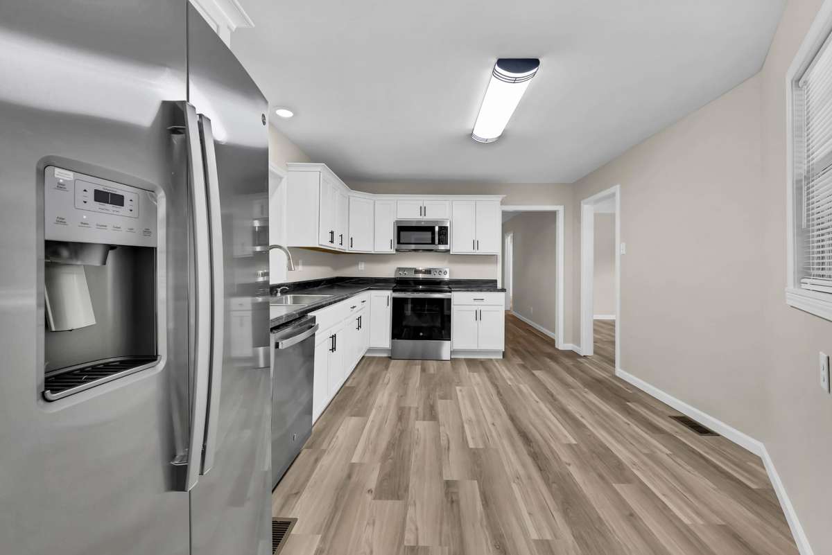Offering added peace of mind, this high- elevation lot requires no flood insurance. Step inside this beautifully remodeled brick ranch, fully updated in 2024 to blend timeless charm with modern convenience. With three bedrooms and two baths, the home offers a refreshed interior designed for both style and everyday comfort. The bright, modern white kitchen shines with all- new appliances and ample counter space, making meal prep a breeze. The spacious family room centers around a charming fireplace, while the primary suite delivers a touch of luxury with double vanities and a sleek glass- walled shower. Practical features include a dedicated laundry room for easy organization and a storage building out back for all your extras. Recent upgrades add peace of mind, with a new HVAC system, roof, and water heater all installed in 2024. Outdoors, a two- car carport and a peaceful setting create the perfect balance for relaxing or entertaining.
