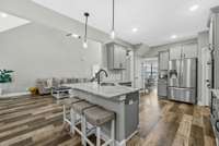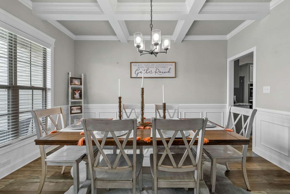 Enjoy modern living in this sleek home, complete with neighborhood amenities and a private backyard—ideal for both relaxation and entertaining! Step into this open concept floorpan & prepare to be in awe. Complete with entry foyer, formal dining with wainscoting and coffered ceiling, spacious eat- in kitchen with staggered cabinetry, granite countertops, double oven & large pantry that seamlessly flows into the vaulted living room. Styled with a shiplap gas fireplace and inviting natural light from tall windows, this space is the heart of the home offering unparalleled views of the lush fenced backyard. But that' s not all! Looking for two bedrooms on the first floor? Check! Split bedroom floorpan, enjoy a guest bedroom and full bathroom, along with the master on main. This suite includes a large sitting area with two walk- in closets, expansive bathroom with split vanities, glass enclosed shower & a large tub for relaxing nights. A quick walk to the second floor, features two large bedrooms, a full bathroom and a generous bonus room with double attic access for all your storage needs. Small details such as a separate utility room with cabinetry, a central vac system to make cleaning days a breeze and raised garden beds, ready for farm to table growth! Appreciate this community featuring clubhouse, fitness center, playground, swimming pool, wooded walking path & so much more. This house has it all & must see in Sango.