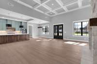 Under Construction Luxury Home- More pictures to come. Attention Golfers- this one has a golf cart garage. Experience the perfect blend of elegance and functionality in this 4 bedroom, 3. 5 bath home designed for modern living. Open concept living with coffered ceilings and a gas fireplace in the great room, complemented by built - in cabinets. Chef' s dream kitchen featuring a large island, custom cabinetry reaching the ceiling, a butler' s pantry with a beverage refrigerator, and high- end appliances, including a gas cooktop, refrigerator, and dishwasher. Primary suite retreat with stunning accent brick wall, an over sized walk- in closet with built- ins, and a spa like bathroom. Extra conveniences include custom shelving in the pantry, a drop zone for organization, and tankless hot water heater for endless hot water. Out door living- A covered back porch with a rock electric fireplace for cozy evenings and cypress post on the front porch for timeless curb appeal. Energy Efficiency- Spray foam insulation and a storm shelter for piece of mind. Additional features include designer lighting throughout, stunning steel & glass front door, 3D shingles. All measurements are approx. and not guaranteed, if important please remeasure. Taxes are for lot only. Still in the finishing stage, Builder reserves the right to make changes.