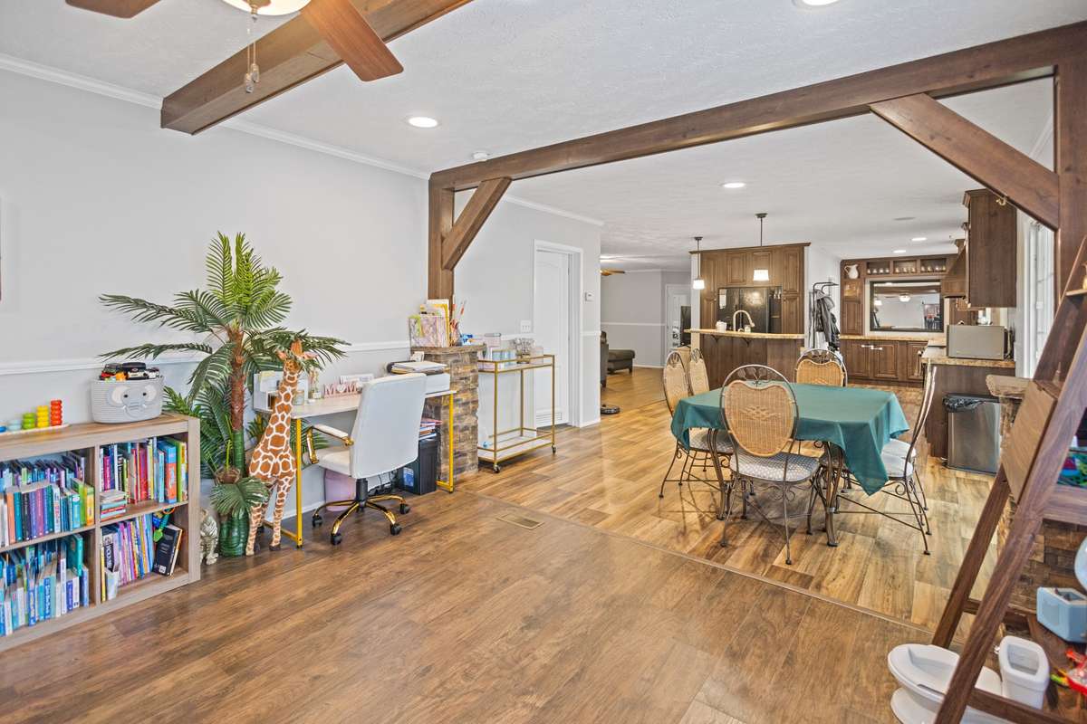 This 4 bedroom, 3 bath home is on a sprawling 7. 54 acres full of mature trees, massive boulders, and caves big enough to fit in. This property really is magic. Owner recently replaced the flooring throughout, installed new gutters and had 2 storage sheds built. One is a 8' x10' the other has a large 12' x 32' footprint, 2 lofts for extra storage and has electric ran to it. Enjoy the fall season while relaxing on both the back and front covered porches. Dog ready, large fenced in front yard. Home has been taken care of and pride of ownership is apparent. Come see it for yourself! 1% Lender credit with preferred lender!