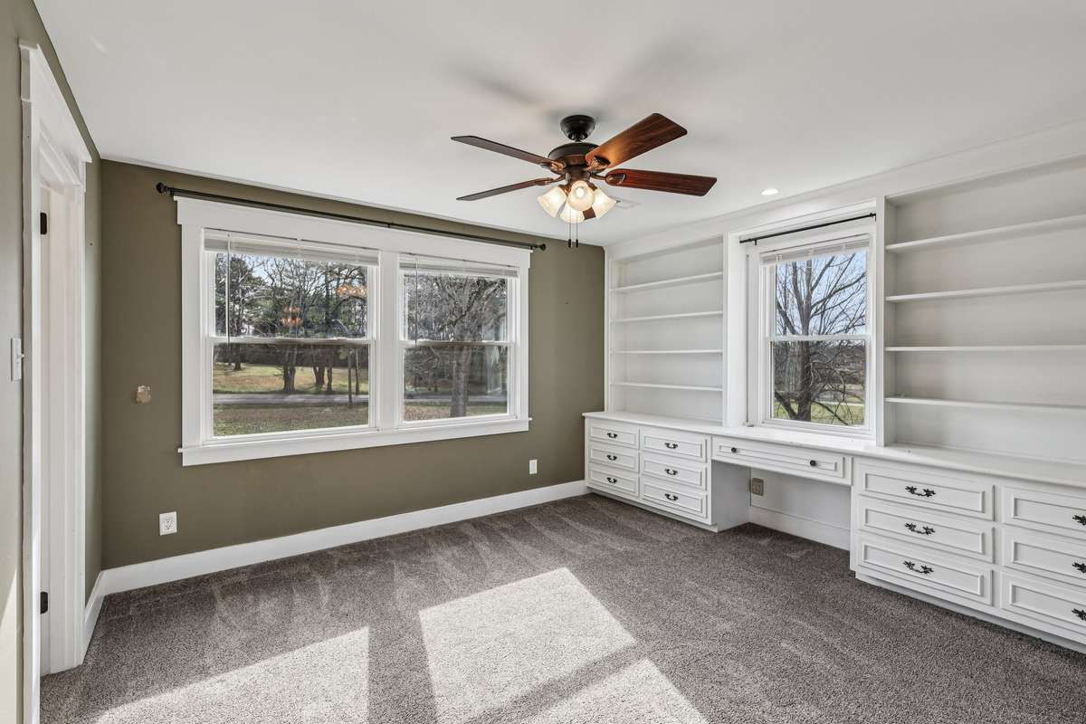 Upstairs, the oversized primary bedroom is a true retreat, complete with a built- in office space, a huge walk- in closet, and a private ensuite with a tile shower. Two additional spacious bedrooms share a well- appointed bathroom with a tub/ shower combo.