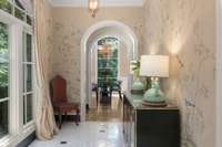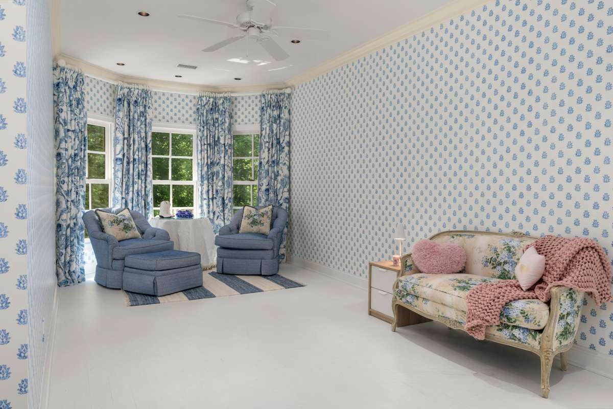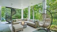 The spacious lower level includes a full kitchen, expansive rec. room, and French doors that open to a limestone patio with a stunning stacked- stone wood- burning fireplace—perfect as a guest, in- law, or nanny suite, adding a 5th bedroom to the home. Surrounded by trees, the house feels incredibly private.